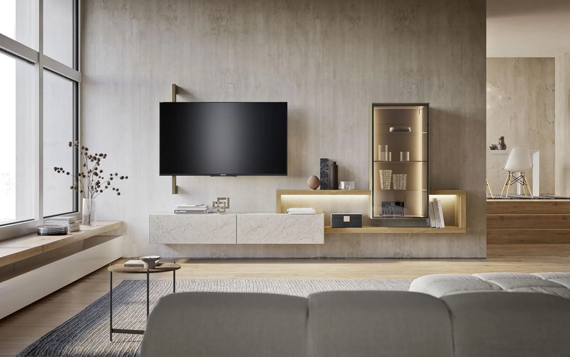 Dai valore ai tuoi interni con le Pareti Attrezzate moderne di Mobilgam: in negozio troverai mobili e complementi di design, in materiali di qualità e delle migliori marche. La Parete Attrezzata Composizione Horizon 1017 di Mobilgam in foto ha grandi doti di componibilità e diverse possibilità di caratterizzazione: scopri la parete attrezzata qui visibile e contattaci per maggiori info e preventivi. Per soddisfare le eterogenee problematiche abitative di ciascuno, brand mette a disposizione dei suoi clienti un ricco catalogo Pareti Attrezzate moderne assai funzionali e contraddistinte da un tocco di stile. A muro o freestanding per organizzare al meglio un open space, le più belle composizioni d’arredo sul mercato arredano il living usufruendo al meglio di lo spazio disponibile.